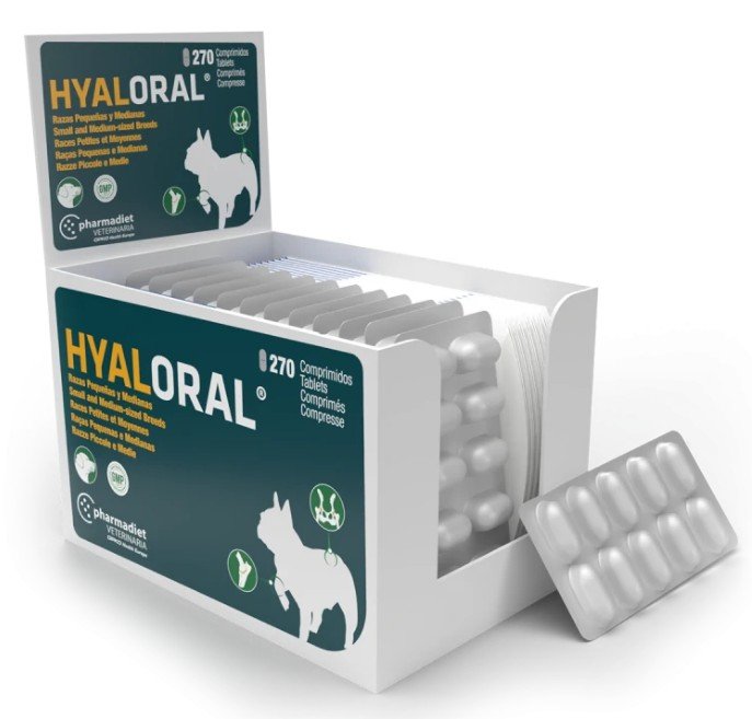 Hyaloral razas pequeñas y medianas condroprotector de Pharmadiet para perros pequeños y medianos.